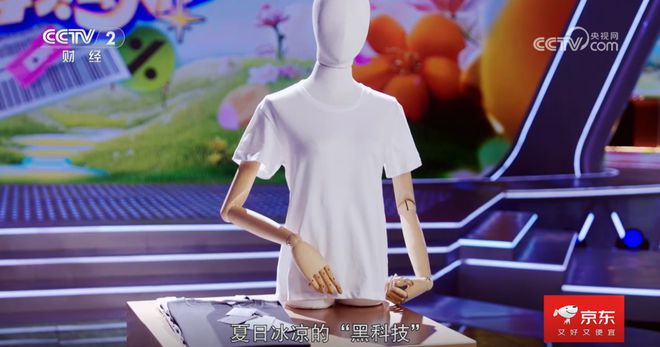 “我身上这件看似普通的T恤,能把实验室的‘黑科技’,变成中国人身上的‘清凉盔甲’,通过京喜自营工厂直发的模式,20多元就能让大家享受夏日冰凉。”西盟罗盾服饰董事长贾俊华在节目中提到。
